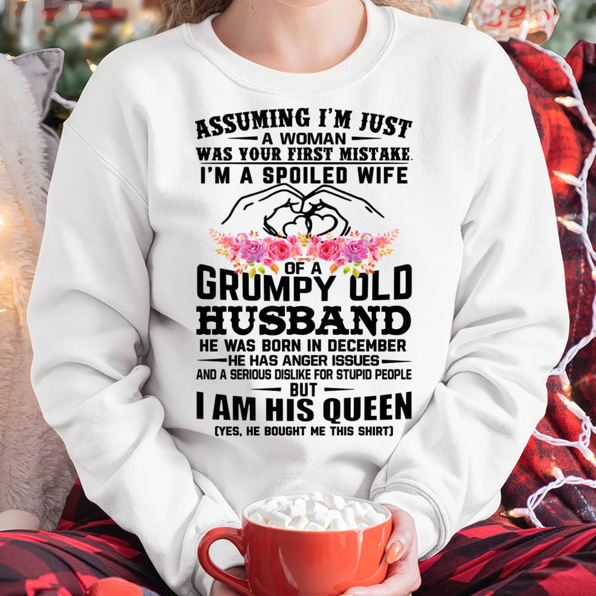December - Spoiled Wife T-Shirt – Grumpy Old Husband Funny Tee - Perfect Gift From Husband - SNOW12 (SKU11-101-12)
