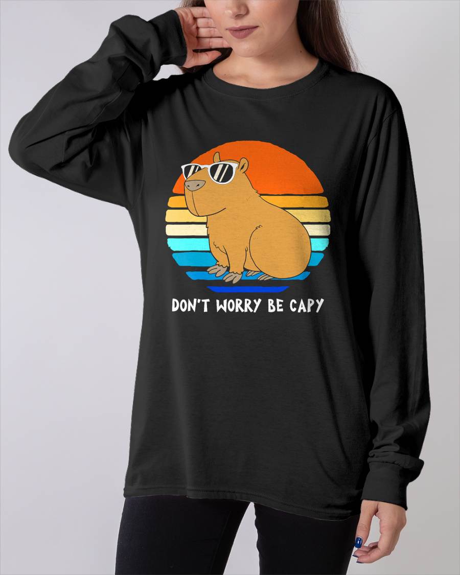 Retro Rodent Funny Capybara Dont Be Worry Be Capy T-Shirt Small