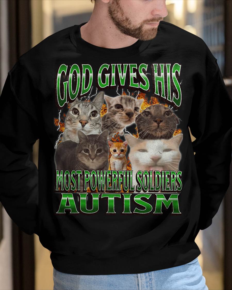 God Gives His Most Powerful Autism Funny Cat Meme Bootleg T-Shirt