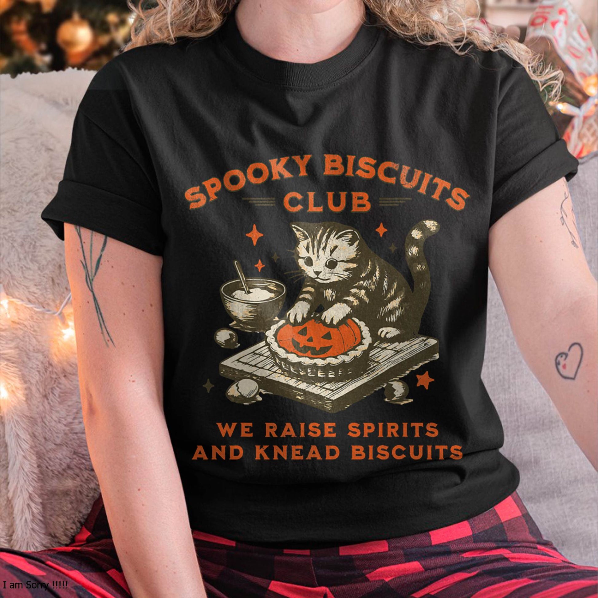 Spooky Biscuits Club Cat, Funny Halloween Baking Tee T-Shirt