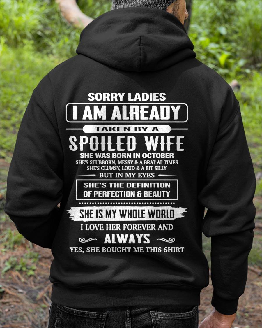 OCTOBER, SORRY LADIES I AM ALREADY TAKEN BY A SPOILED WIFE – GIFT T SHIRT FROM WIFE FOR HUSBAND – SNOW MALE10 (SKU26T-01296-10)